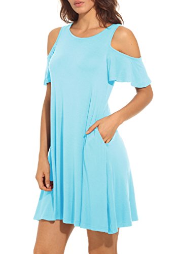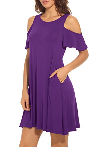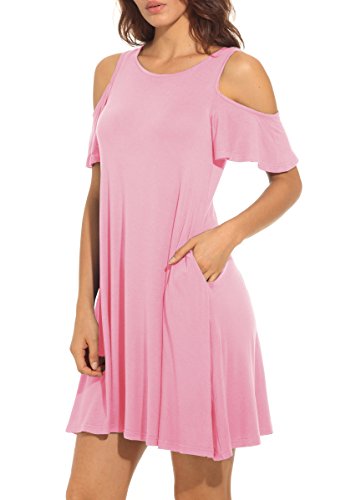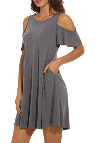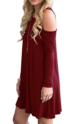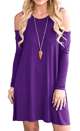 *QIXING Women's Long Sleeve Cold Shoulder Casual Loose Swing Dress