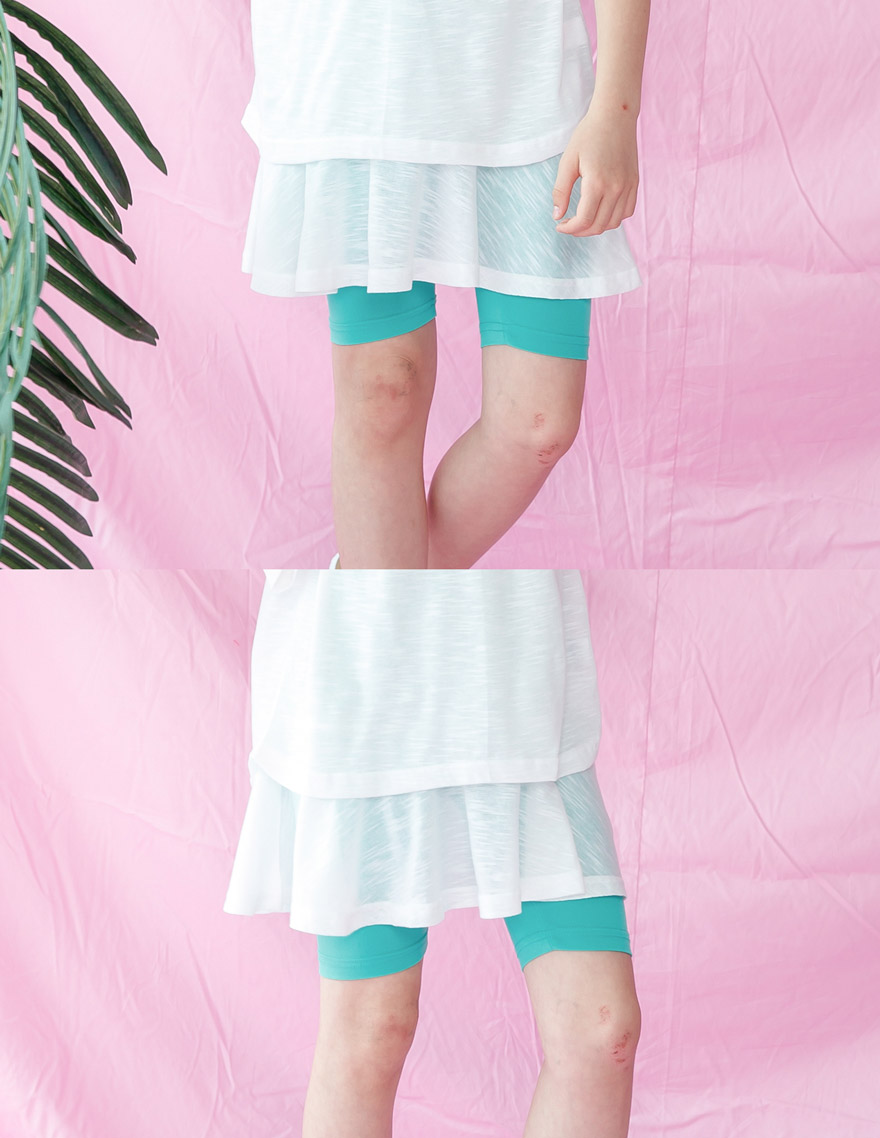 찰랑거리는 폴리, 스판 혼방 소재의 4부 레깅스입니다.