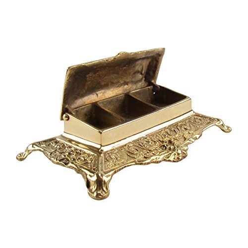 -. Feature : Take a journey back in time and store your belongings in a place fit for a King when you own this Vintage Ornate Desktop Coin or Stamp Box / Made entirely out of brass, this ornate holder sits on a four-legged pedestal / You can use this vintage desk brass organizer to store any number of items like a coin, jewelry, change, or stamp roll / The box measures 3 1/2" Long 6" Wide, and 1 1/2" Deep / Ornate Desktop Holder ships brand new in manufacturer's packaging with our 100% Customer Satisfaction Guarantee