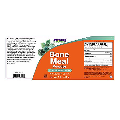 NOW Bone Meal Powder is naturally derived from cattle raised in the United States. Bone Meal Powder is an excellent source of Calcium. Calcium in bone meal occurs as a natural calcium phosphate compound known as hydroxyapatite. NOW Bone Meal Powder is tested for heavy metals such as lead and aluminum to assure the lowest levels possible. Adequate calcium throughout life, as part of a well-balanced diet, may reduce the risk of osteoporosis.Feature