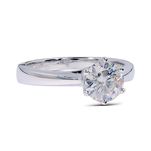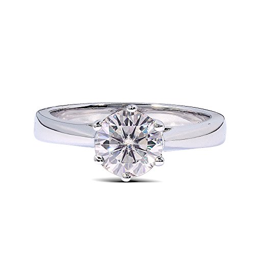 -. Title : Platinum Plated Sterling Silver Excellent Cut Moissanite Ring, 1 carat, H-I Color from TransGem for women