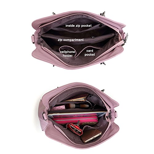 - 【GOOD QUALITY】 PU leather with high quality hardware.Adjustable Shoulder Strap,Decorative Gold-tone Hardware, Zip-pockets in Middle.