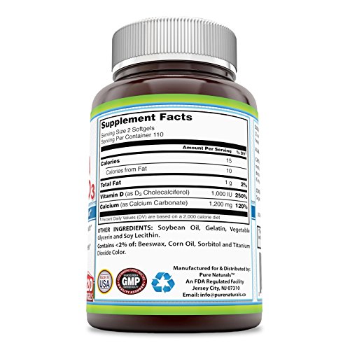 OPTIMAL DOSES OF CALCIUM & VITAMIN D3 Each serving of 2 softgels provides 1200 mg of Calcium (as Calcium Carbonate) and 1000 IU of Vitamin D3 (as cholecalciferol) ; an optimum dosage that the body can easily absorb.