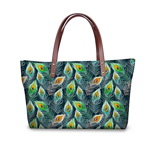 Mumeson Women Girls Vintage Peacock Feather Handbag Tote Satchel Neoprene Shoulder Bag Purse