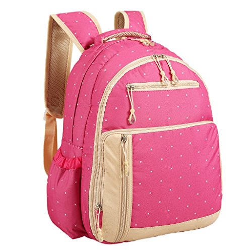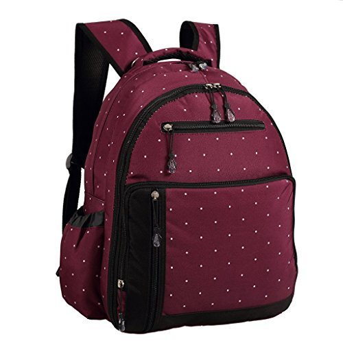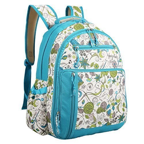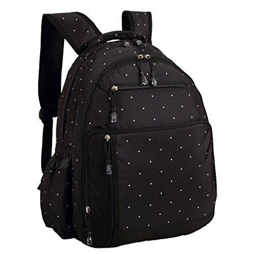 Adjustable, cushioned shoulder straps and breathable air mesh panels on the backside balance out the weight of this backpack and provide comfortable carrying experience