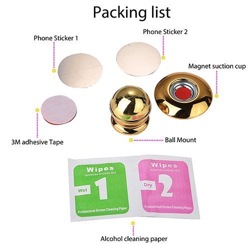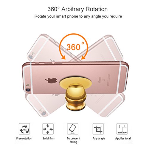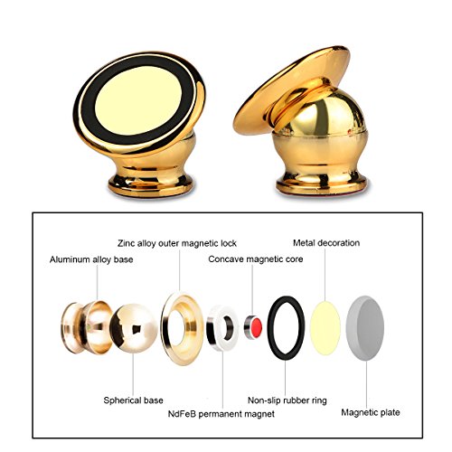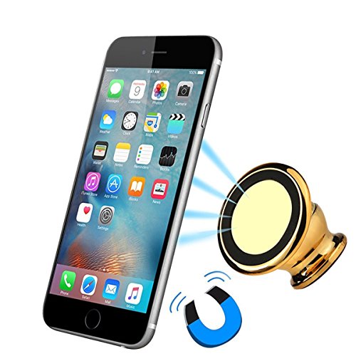 Car Phone Mount Holder 360° Rotation Magnetic Car Holder Universal Smartphone Holder Mobile Phone Bracket for iPhone iPad Samsung Sony and More (Gold)