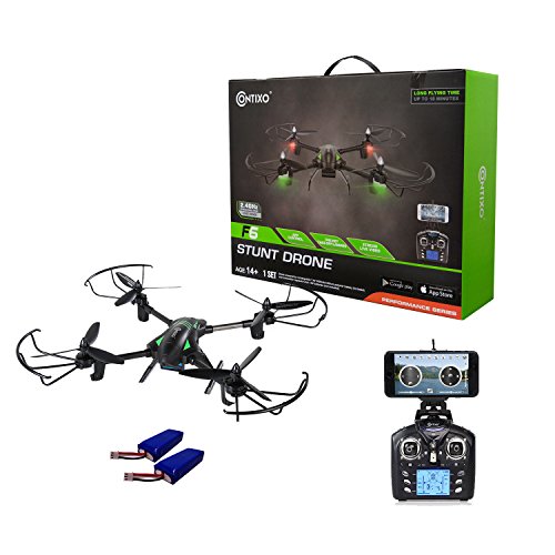 Take to the skies with confidence using the brand new 2017 F6 from Contixo. This F6 drone has all the latest drone technology that not only makes it easy to fly but gives the pilot full control. One button return makes it simple to safely recall the drone, altitude hold makes it a breeze to capture those perfect angles with included rotating 720p HD camera, a 2300mah battery gives pilot extended flight times of over 18 mins, our mobile app allows you to control the drone without the radio controller, and live video transmission to your mobile device gives you FPV capabilities. The F6 drone has a rotating camera that can be adjusted mid flight using the Mobile Device App and thanks to the 6 axis gyro, you can be assured your pictures and videos will have less movement and smooth capture.