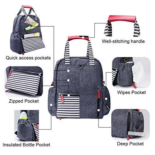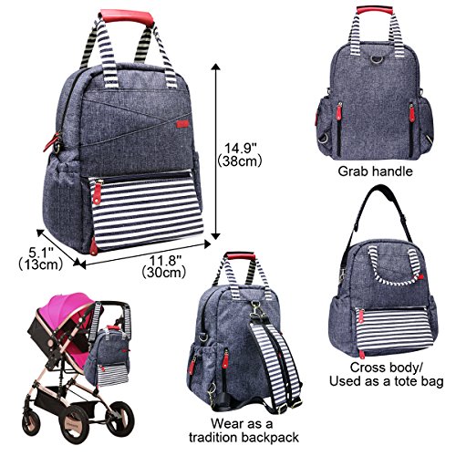 CONVERTIBLE CARRY WAYS - Backpack with a pair of straps for multiple functional, choices of wears as a tradition backpack, cross body or attach to stroller, as well grab handles on the top.