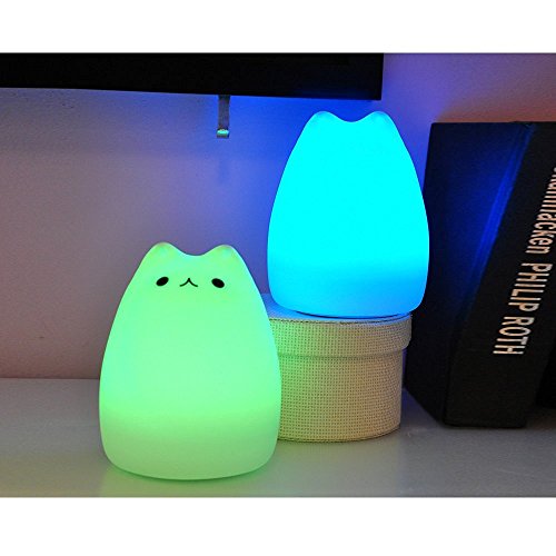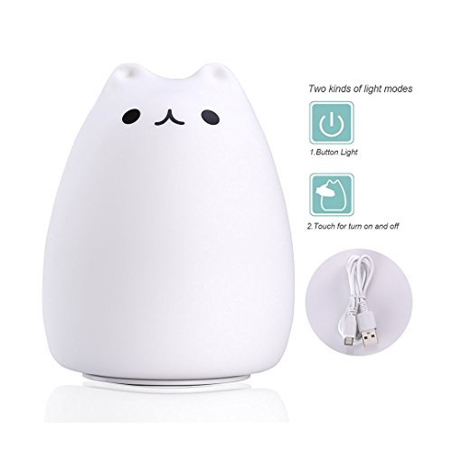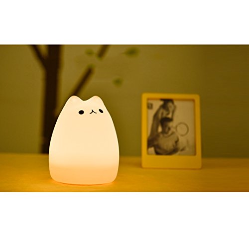 S&G night light Cute Smile Cat Silicon LED Desk Lamp with 7 Changing Color for Baby Bedroom Office- Warm White