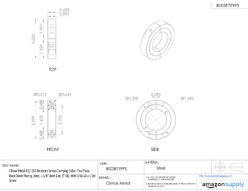 Climax Metal H2C-162 Recessed Screw Clamping Collar, Two Piece, Black Oxide Plating, Steel, 1-5/8" Bore Size, 3" OD, With 5/16-24 x 1 Set Screw