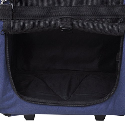 -. Feature : This pet trolley is lightweight and ventilated. It is designed for small pets like cats, dogs, rabbits, etc. / Featuring an all-in-one design, this collapsible trolley can also be used as a pet backpack and a pet hand bag. / It will really be a perfect choice for pet owners. This pet trolley is light and well-ventilated, with strong mesh windows on three sides, which makes it a comfortable shelter for your furry friend. / The zippered doors can be rolled up or down, which makes it easy for your pet to get in and out. This pet trolley also boasts 2 zippered storage pockets for carrying small items like toys, treats, etc. / Made of high-quality metal and fabric, this pet trolley is very durable.