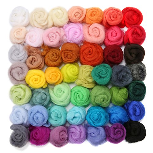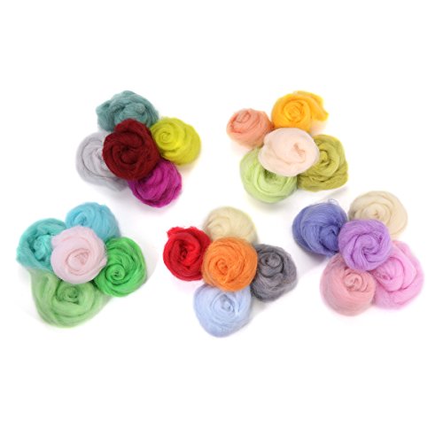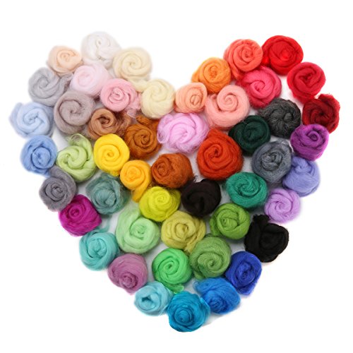 Jeteven 50 Colors Merino Wool Fibre Roving Spinning Sewing Trimming For Needle Felting DIY Craft (5g per color)