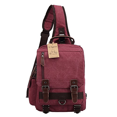 Ulgoo Canvas Messenger Bag Single Shoulder Backpack Durable Strap Travel Rucksack