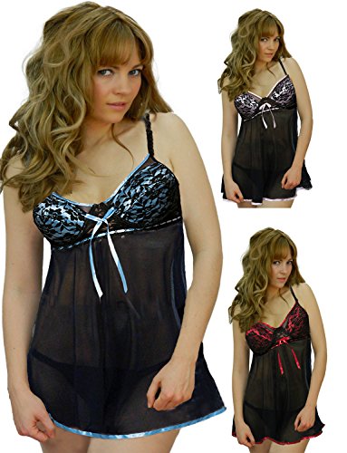 -. Feature : Yummy Bee - Erotisches und Figurbetontes, Vorteilhaftes Babydoll-Set / Erhältlich in Klassischem Schwarz mit Satinbordüren in Heißem Babyrosa, Sexy, Rasantem Rot oder Leuchtendem Blau / Den Größen 34 - 56 - Siehe Bild Oben Für Uns Vorgeschlagenen Größe Diagramm / **Schnelle Lieferung - Lieferzeit 2 - 5 Tage - 30 Tage Rückgabegarantie ohne Nachfragen** / Wunderschönes Set - In Diesem Erotischen Set sind Sie im Schlafzimmer Brandheiß!