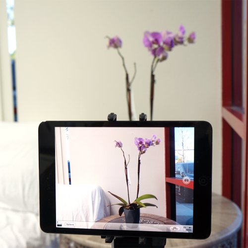 New innovative, Assembled in the USA Universal Tripod Adapter will allow you to sit your Apple New Ipad Mini & Any 7"-7.9" Tablet with rear view video camera directly on to your Tripod (Tripod is sold separately)