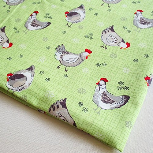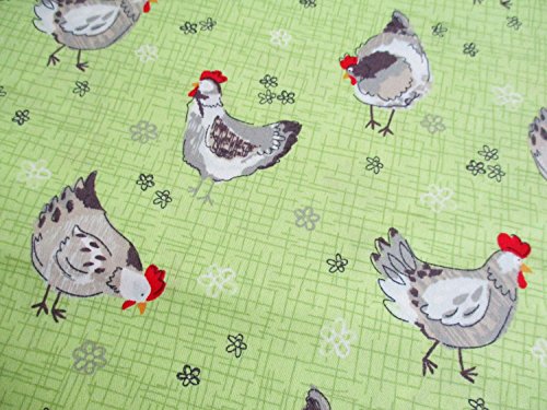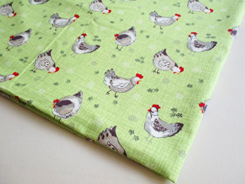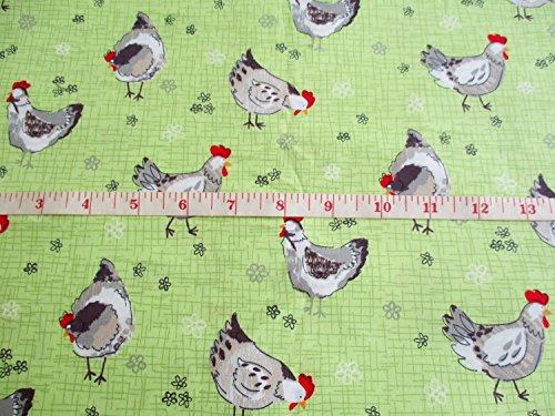 Chicken Rooster Fabric Chick Chickens on Light Green Fabric 36 by 36 Inch Wide (1 Yard) (CT638)