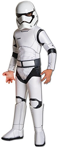 Officially licensed deluxe Stormtrooper as seen in Star Wars Episode VII: The Force Awakens. Comes with costume jumpsuit, mask, and belt; jumpsuit features hi-definition photo-real printing, attached 3D boot-tops, and foam “armor” detail. IMPORTANT! Do not use clothing size or age to select costume; costumes are sized different than apparel; use the Rubie’s Child Size Chart and recent reviews. Rubie's offers costumes and accessories from Star Wars original and prequel trilogies as well as the Clone Wars series. From Princess Leia to Rey, Han Solo to Finn, Darth Vader to Kylo Ren, create fun group and family costume looks with help from Rubie’s!Feature