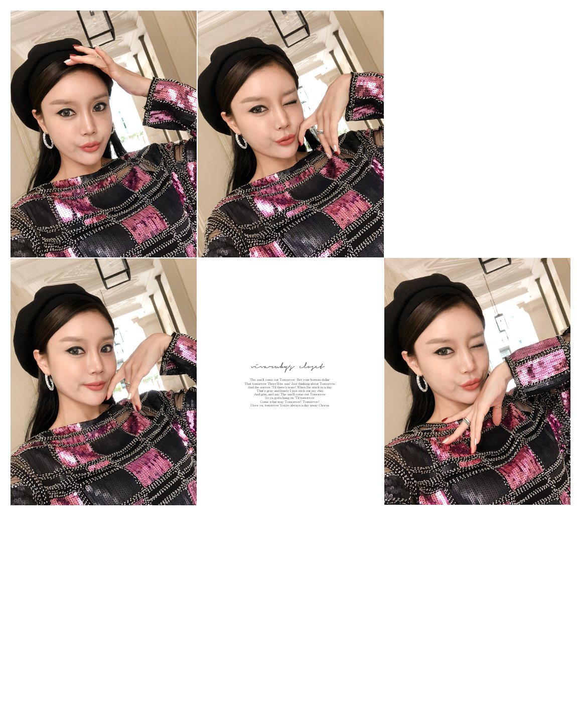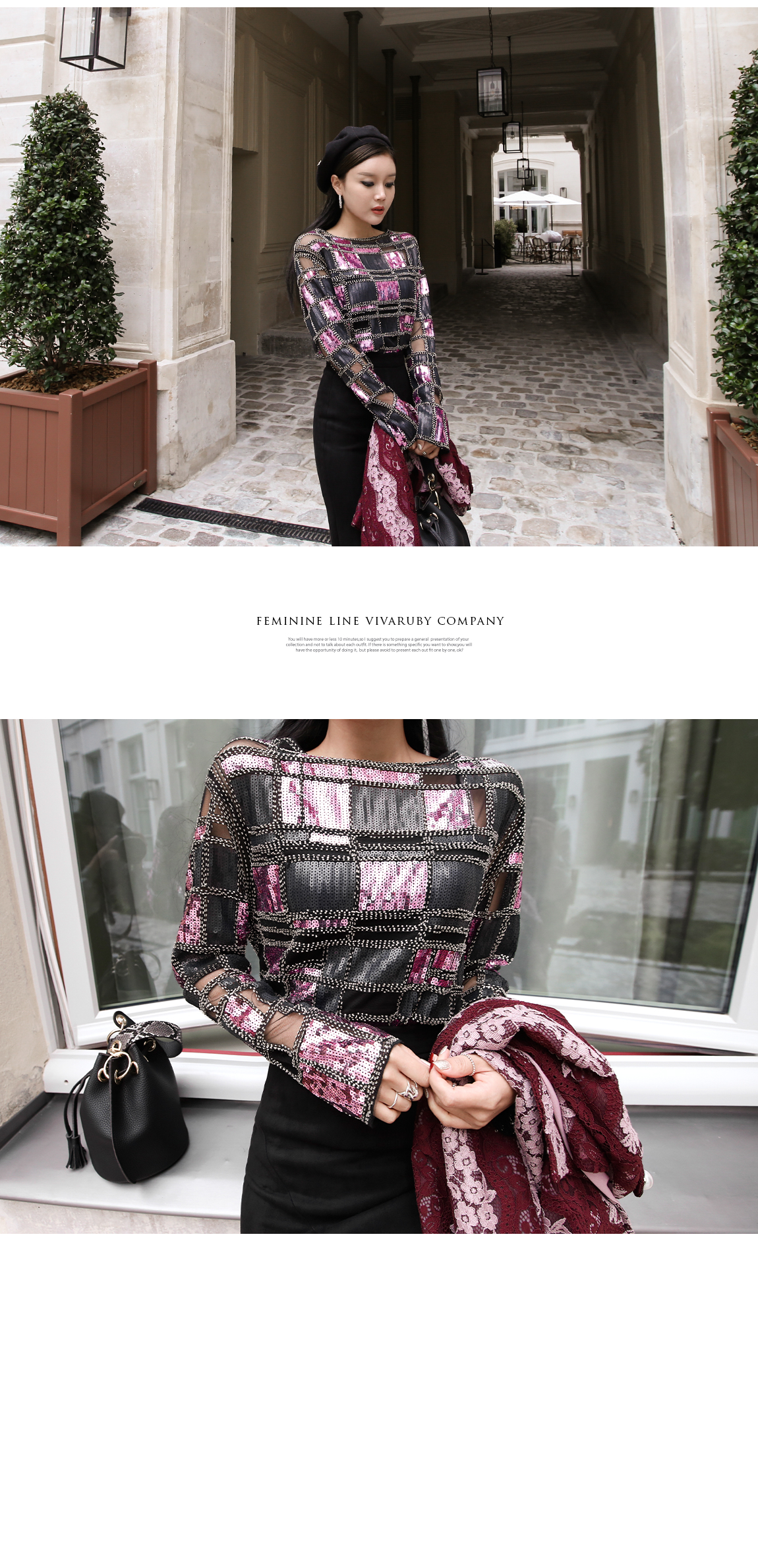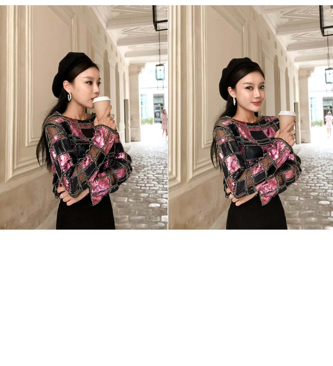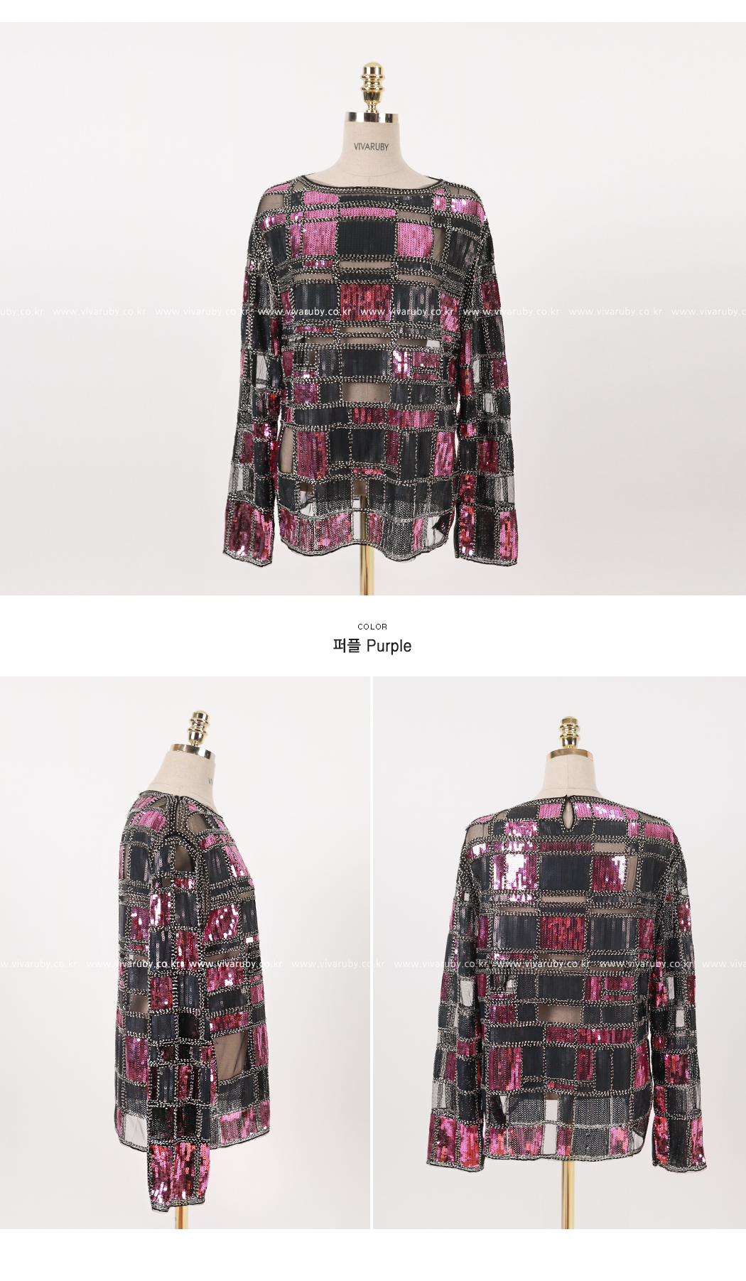 스팽글 부분은 제작에 따라 위치가 다를 수 있으나 전체적인 스타일은 같아요