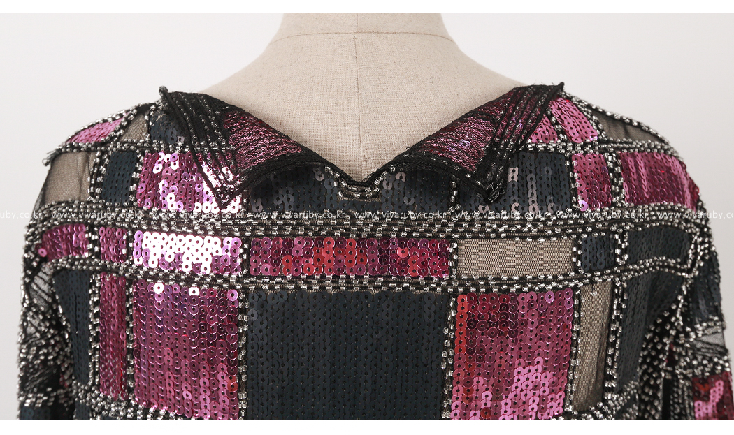 二つのカラーのスパンコールとビズが華麗に装飾されており、