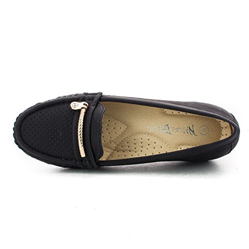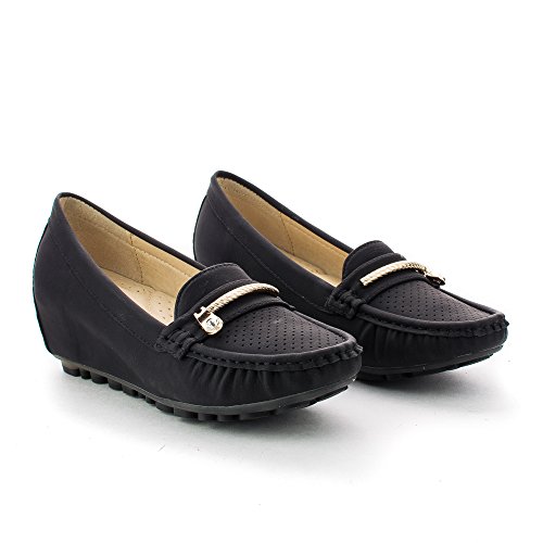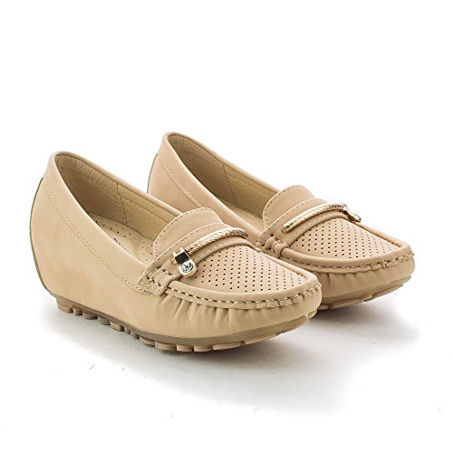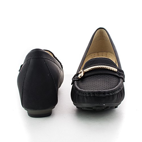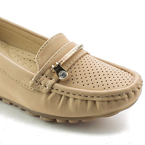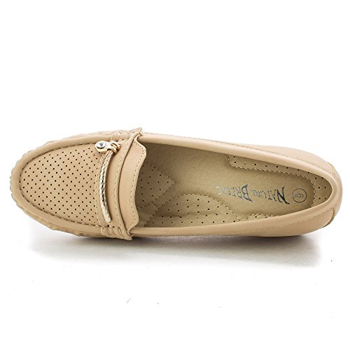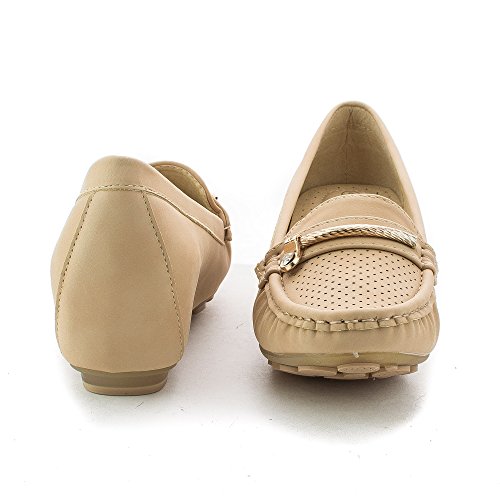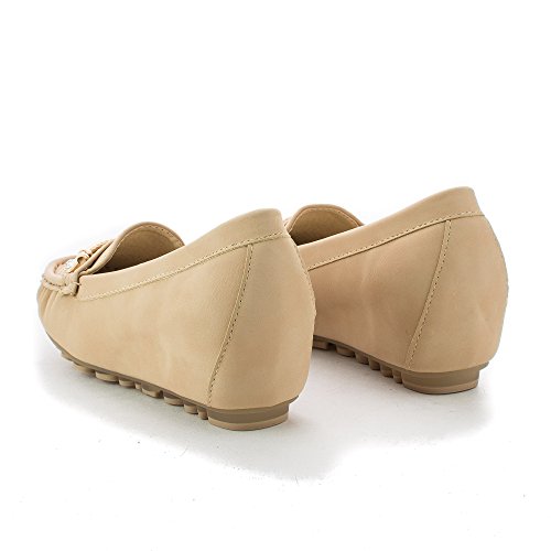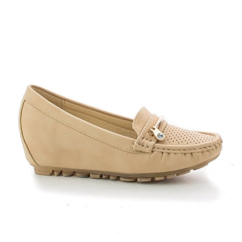 Binding : Apparel Product Description Walk in comfort with these extra cushioned comfort wedge slip on loafers, featuring an almond toe, contrast stitching, perforated near the toe area, extra cushioned insole for comfort, a studded decorative rhinestone with a gold plated metal strap, a grip lug sole, and an approximate 1.75 inch wedge hidden heel. (Please note that these measurements are based on a size 6). Style runs true to size. Available in Red, Beige, Black, etc. All man made materials. By Nature Breeze Shoes. Please note that all monitors display color differently, what you see on your monitor might be slightly different from the actual product. 0