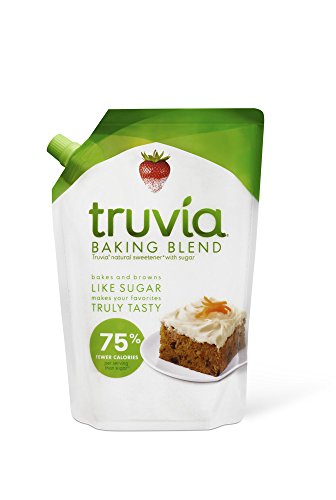 -. Feature : Bake with 75% fewer calories from sugar / ½ cup of Truvia Baking Blend is equal to 1 cup of sugar / Made with 3 ingredients: Stevia leaf extract, erythritol and sugar / Gluten-Free / Kosher