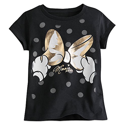 This shimmering jersey knit tee is topped by a Minnie bow graphic with golden accents, plus character ''signature'' and, naturally, a few polka dots.