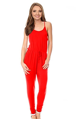 Binding : Apparel Product Description Sleeveless Racer Back Drawstring Spaghetti Strap Jumpsuit with Pockets for Women