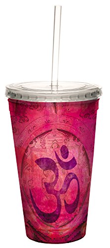 Tree-Free Greetings 98148 Elena Ray Pink Om Double-Walled Cool Cup with Reusable Straw, 16-Ounce