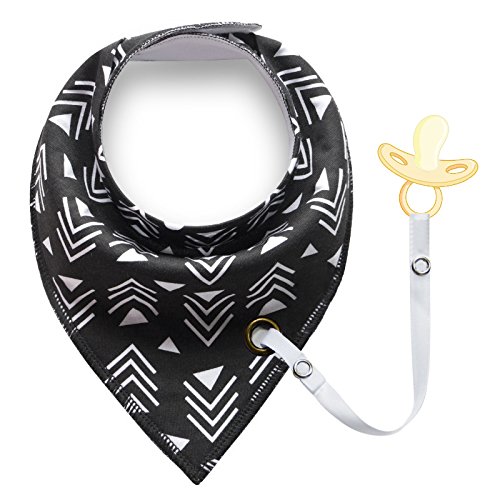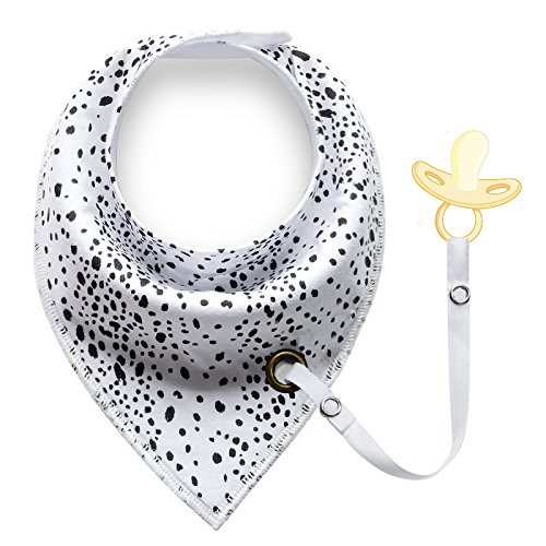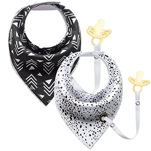 Modern bandana cotton bibs that also have a strap so you can connect the baby's dummy to it without them ever losing it.