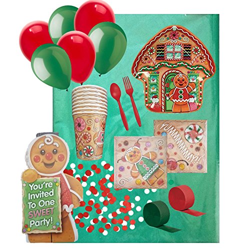 Studio : SKP Ventures Publisher : SKP Ventures Binding : Toy Product Description Perfect for the Candy Lover in all of us!!!!! This fun and adorable Candy Town Gingerbread Birthday/Christmas Party Supply Pack includes plates, napkins, cups, table cover, silverware, invitations, streamers, confetti and balloons to serve and decorate for 8 Guests. Entertaining is made easy with this set and cleanup will be effortless. 0
