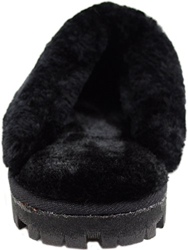 Product DescriptionLadies / Womens Soft Thick Faux Fur Mules / Slippers / Indoor Shoes with Thick Fur Trim. Sizes: 3 - 8. Thick Soft Faux Fur Inners for Warmth and Comfort. Soft Suede Outers. Hardwearing Rubber Sole for Grip. Thick Faux Fur Trim.0