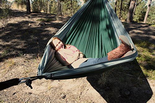 Double Parachute Nylon Hammock Bundled with Tree Straps - Big Enough for Two People - Doubles as a Bed and the Most Comfortable Chair You Have Ever Experienced.