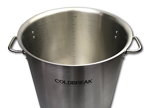 Coldbreak Brewing Equipment CBK10GSSV Brewing Kettle, 10 gal, 18 Gauge, 40 quart with Stainless Steel Ball Valve, 14" ID