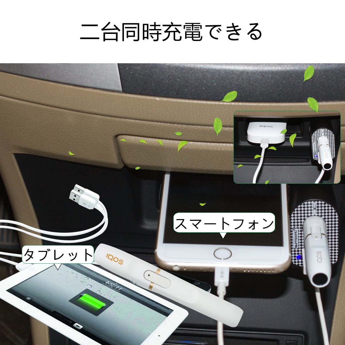 1, Simultaneous charging of USB-equipped external devices such as ICOS and smart phones and tuples, game machines, PLOOM TECH / plume tech, Glo / glow etc;