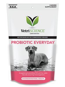Veterinarian Recommended Provides balancing probiotics for dogs that have been treated with antibiotics Supports G.I. health and digestive regularity Easy to give duck flavored chew 30 Bite Sized Chews
