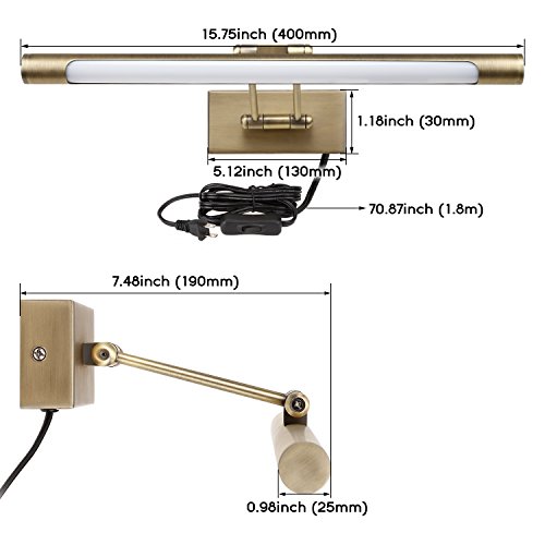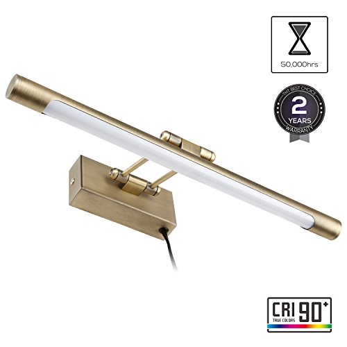 ATTRACTIVE DESIGN: Comes with slim and original appearance with antique brass finish; enhance the look of your decorative items with its 3000K warm white glow; uniform lighting distribution makes your beloved painting, poster, tapestry and make up mirror a focal point
