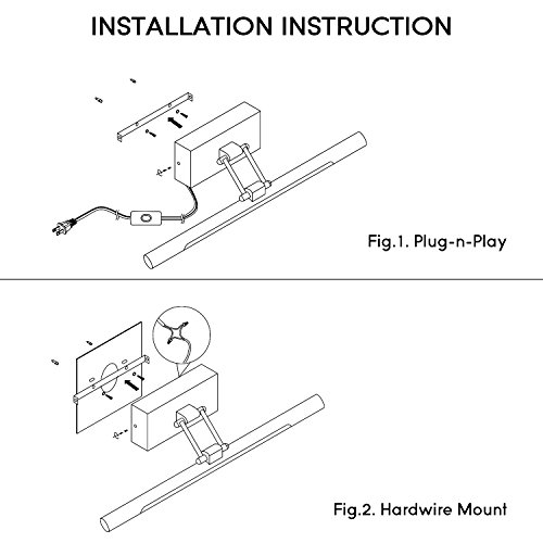 2 INSTALLATION OPTIONS: Available for both plug-n-play and hardwire mount depending on different conditions; easy to install with the provided mounting accessories; 5.9ft power cord with on/off switch attached for convenient lighting access