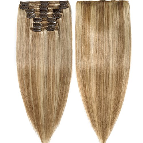 s-noilite Clip in Human Hair Extensions 100% Real Remy Thick True Double Weft Full Head 8 Pieces 18 clips Straight silky (10 inch - 110g,Ash Blonde/Bleach...