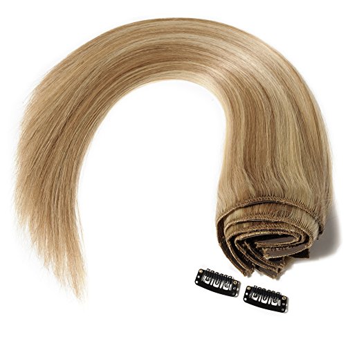 - 10Inch 110g,Ash Blonde/Bleach Blonde (#18/613), Hair Weft:Well Crafted Double Wefts, No Shedding; Kept Thickness From Top to End,Tangle Free; Sewn with Quality Clips, Secure & Comfortable to Wear.