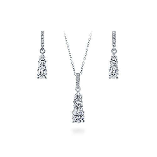 -. Title : BERRICLE Sterling Silver Round Cut Swarovski Zirconia 3-Stone Bridesmaids Necklace and Earrings Set