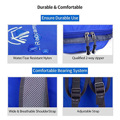 -. Brand : REDCAMP -. Color : Blue -. EAN : 0712145993368 -. Feature : ★DURABLE: Made from ultra-strong water/tear resistant nylon fabric, the waterproof foldable backpack provides exceptional strength and longer life. The pack's stress points come with bar-tacking reinforcement, which ensure you a durable backpack for hiking camping travel / ★COMFORTEABLE: Most Comfortable Wide Breathable Mesh Shoulder Straps, easy to Adjust the length and lock firmly. Redcamp camping backpack offers a proper fit and comfortable all-day use. / ★ULTRALIGHT & ROOMY: This lightweight waterproof backpack weighs only 0.2kg, adding no unnecessary weight to your load. There's a main compartment with an interior pocket, a zippered front compartment and two side pockets. Can provide a generous capacity of 25L , perfect for everyday use and short travel adventures. / ★FOLDING DESIGN: This foldable small backpack can be stuffed into its own zippered pocket for space-saving storage and compact portability. / ★GUARANTEED: REDCAMP offers a 365-day limited manufacturer warranty. If you're not satisfied for any reason, please contact us immediately and we will give you a reply within 24 hours. -. IsAutographed : 0 -. IsMemorabilia : 0 -. Label : Redcamp Ecommerce Co., Ltd -. Manufacturer : Redcamp Ecommerce Co., Ltd -. MPN : rc17683a -. PartNumber : rc17683a -. ProductGroup : Sports -. ProductTypeName : OUTDOOR_RECREATION_PRODUCT -. Publisher : Redcamp Ecommerce Co., Ltd -. Studio : Redcamp Ecommerce Co., Ltd -. Title : REDCAMP Lightweight Daypack Waterproof,Foldable Backpack for Hiking,Camping Daypack Small,Blue 25L -. UPC : 712145993368