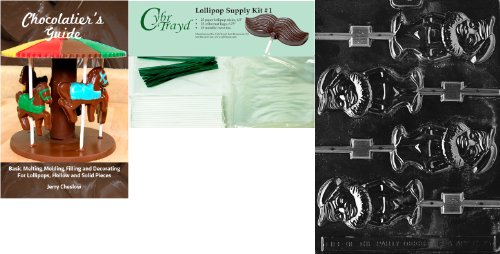 Cybrtrayd Elf Lolly Chocolate Mold with Chocolatier's Bundle of 25 Lollipop Sticks, 25 Cello Bags, 25 Green Twist Ties and Chocolatier's Guide