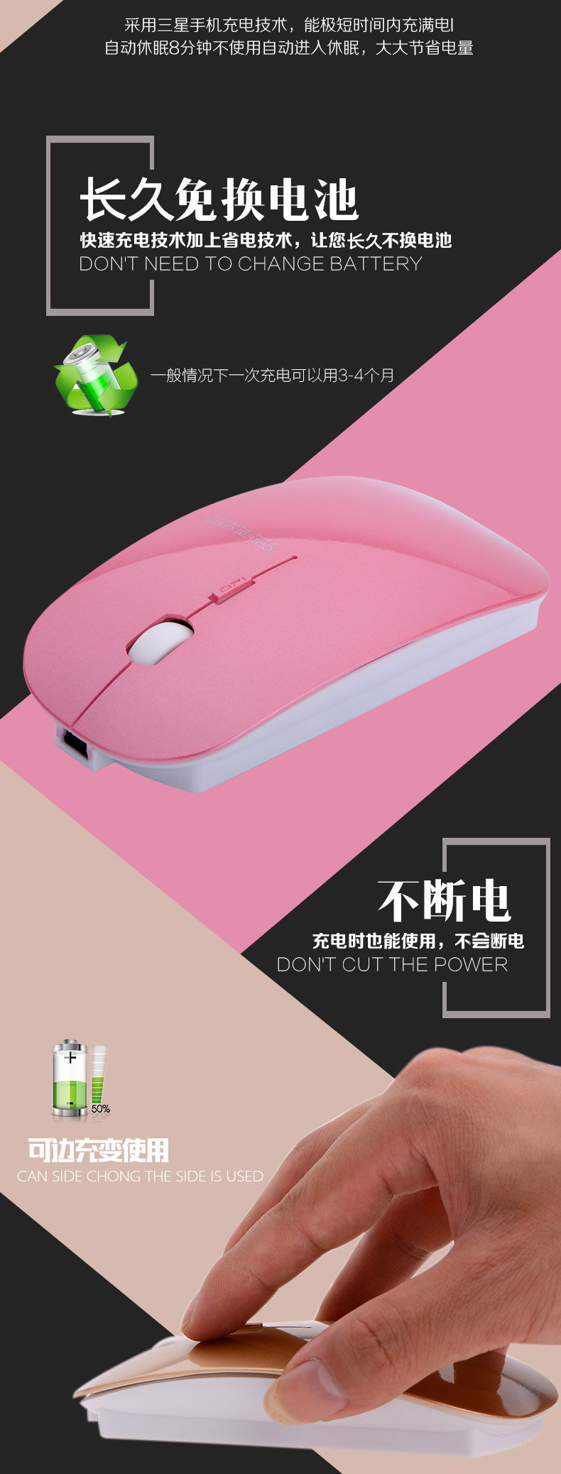 好消息:趁着女王节的到来,本店推出全新“无线”、“无声”、“可充电”、“不用换电池”、“即插即用”“方便的不要不要的”鼠标