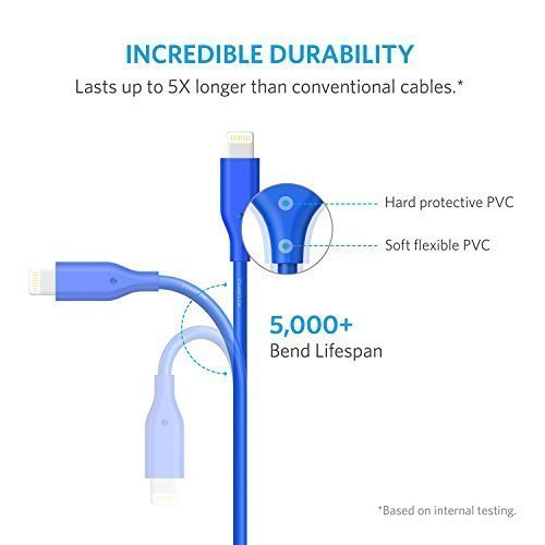 Anker PowerLine 6ft Lightning Cable, MFi Certified for iPhone X / 8 / 8 Plus / 7 / 7 Plus / 6 / 6 Plus / 5S (Blue)