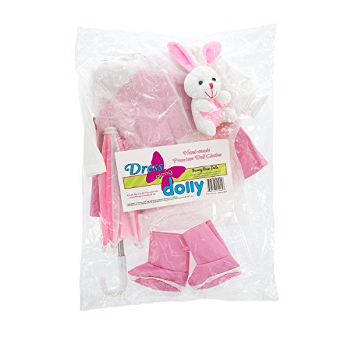 Doll Clothes for American Girl Dolls: 4 Piece Rain Outfit - "Bunny Rain Date" Includes Raincoat, Umbrella, Boots, and Best Friend Bunny: From the makers of the best selling Ride Along Dolly Bike Seat comes a line of doll clothes that will make your favorite American Girl or comparably sized dolls' heart melt. Dress Along Dolly Clothes are all hand made, and custom designed to give your doll the unique look that you want. You won't find these clothes in any store. These are truly unique designs exclusive to Dress Along Dolly. Show off your doll in style. Fits any standard doll of approximately 18" in height, including American Girl Dolls.Feature