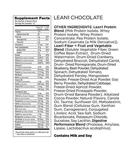 Lean1 from Nutrition 53 is a meal-replacement shake that provides everything your body needs to support a healthy lifestyle--just like any other well-balanced meal. Whether you're a serious athlete, an active businessperson, or a busy mom, Lean1 is formulated to help you lose weight and build lean muscle, plus it protects your heart and supports healthy digestion. Stay Healthy, Alert, and Ready to Take on Challenges It's no secret that you need the right fuel to perform well during the day, but sometimes the fast-pace of modern life gets in the way of preparing meals. Lean1 contains a balance of vitamins, minerals, proteins, fats, carbohydrates, and fiber. So whether your problem is skipping meals or eating junk foods instead of healthy meals, you can use Lean1 to get a well-balanced meal anytime, even if you're on the go. Protein for Quick Recovery and Omega-3 Oils for Heart Health The proprietary N53 Protein Blend supplies the protein you need for muscular recuperation and growth, while preventing the breakdown of muscle protein. This helps you recover after long days and tough workouts. Lean1 also contains Phytosterols and Omega-3, which research has shown can reduce your risk of heart disease by a significant amount. Support Weight Loss and Promote Healthy Digestion If you're trying to lose weight, Lean1 supports an enhanced rate of fat loss through the combined effects of alpha lipoic acid, Hoodia gordonii extract and green coffee bean extract. Studies have shown these ingredients may also suppress appetite and enhance daily energy expenditure, helping you maintain a healthier lifestyle. And Lean1 contains both soluble and insoluble dietary fiber to help keep your digestive tract clean and healthy.