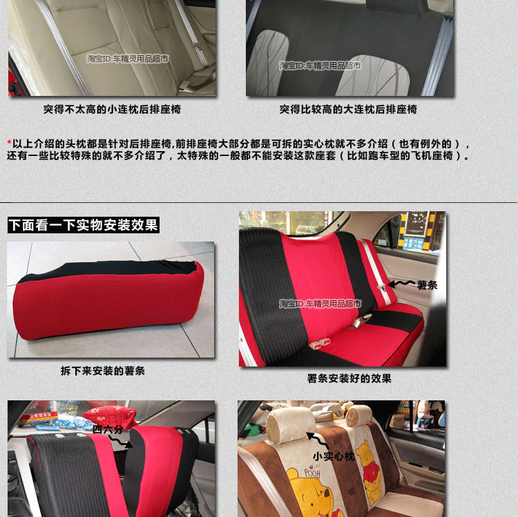 3、更人性化更经济实用。后排是采用分体式设置,头枕是分体的,座套的弹性强,适用于所有的小型轿车(除了个别卸不下前排头枕的轿车)。