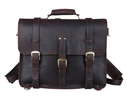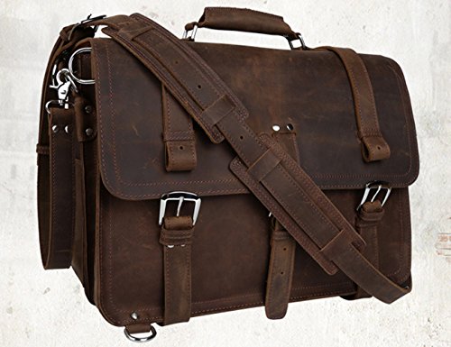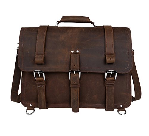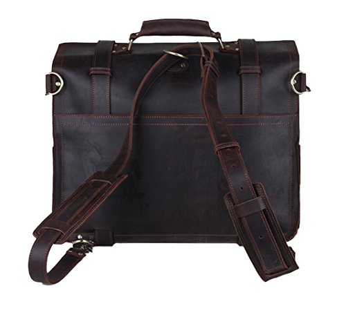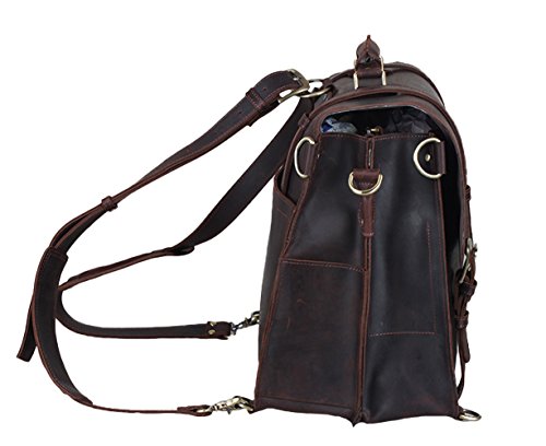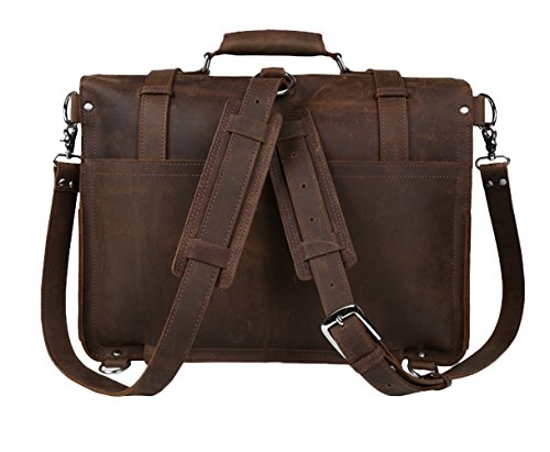 -. Feature : Crazy horse leather,polyester-cotton lining / Adjustable full leather shoulder strap bag as well as backpack / 1 main pocket,1 computer compartment pocket for your 15.6" laptop or ipad,phone and wallet slots inside,inside zip pocket,2 side pockets / Leather laptop case featuring fold-over flap with adjustable buckle straps? / Vintage crazy horse leather briefcase bag for business essentials