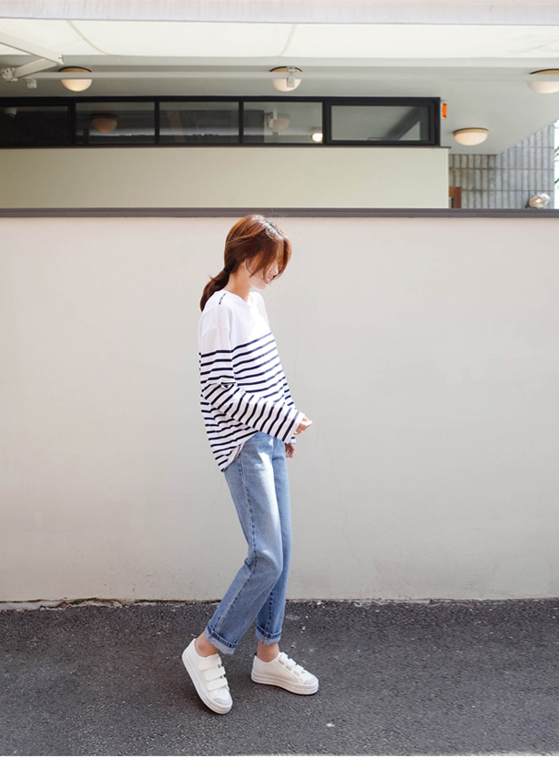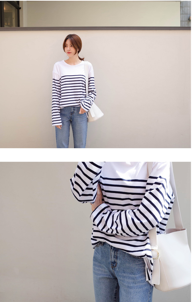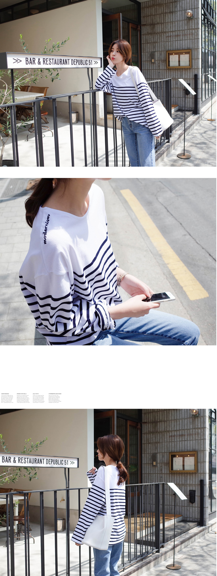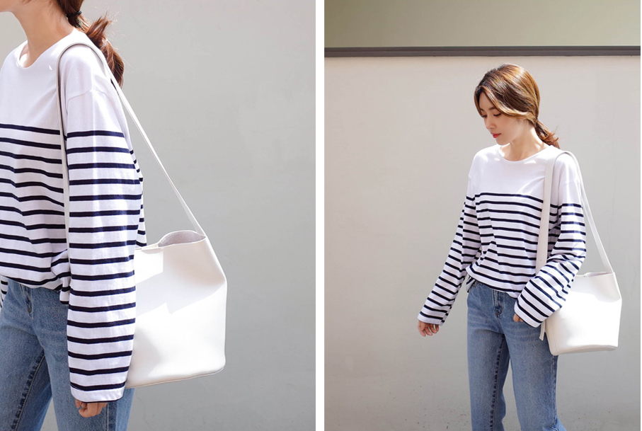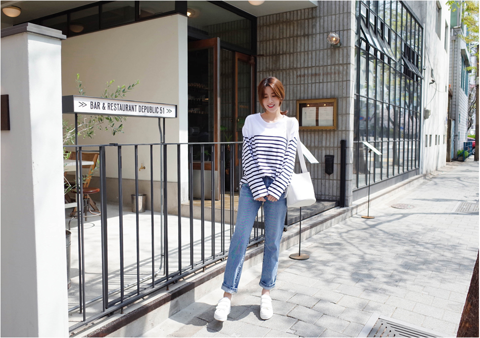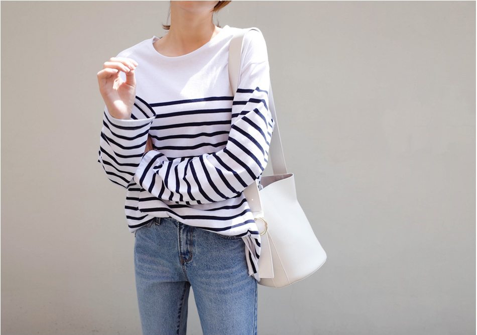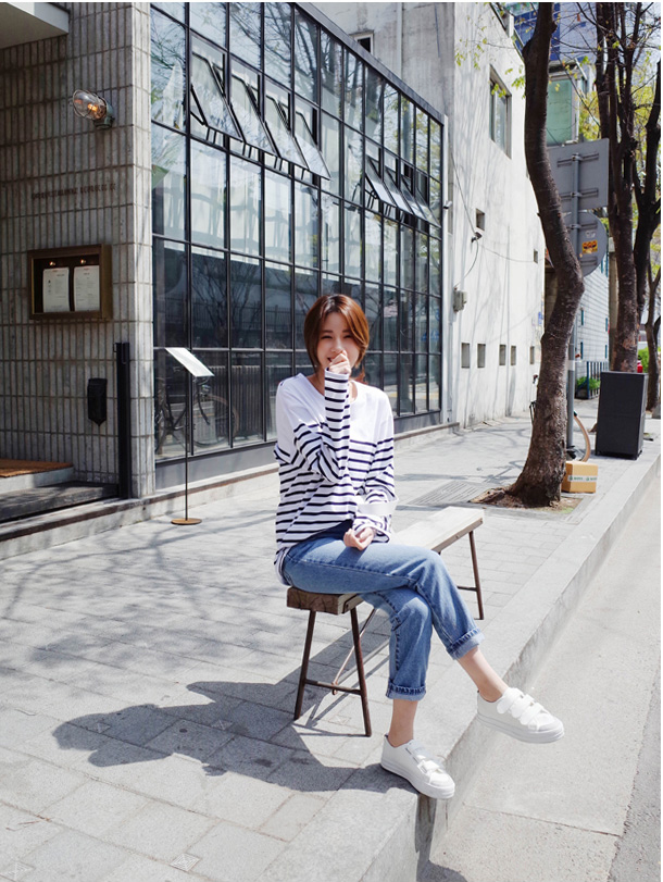 숄더라인은 깔끔하게 표현한 스트라이프