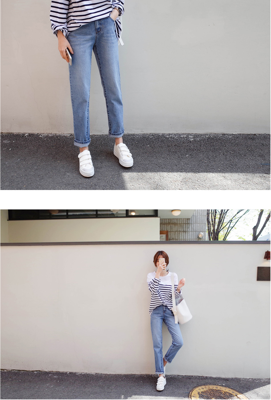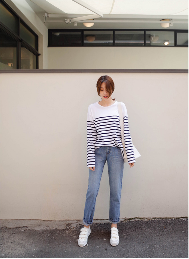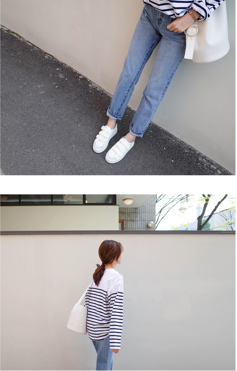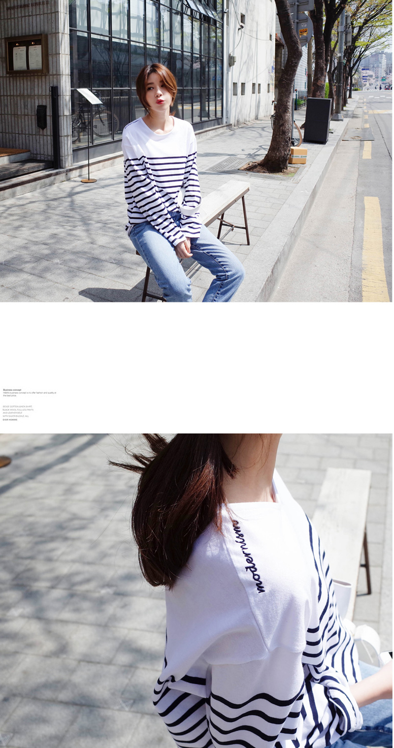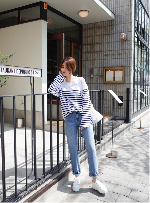 숄더라인은 깔끔하게 표현한 스트라이프